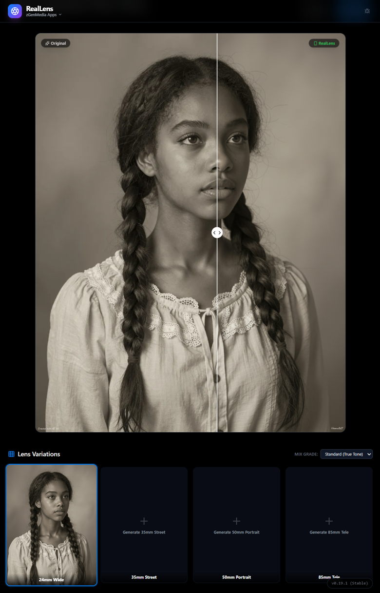 Make AI Images Look Like Real Photos RealLens enhances AI-generated images to look like they were captured on a real smartphone or analog camera. It improves skin texture, hair detail, lighting behavior, and adds subtle grain for a natural photographic finish.